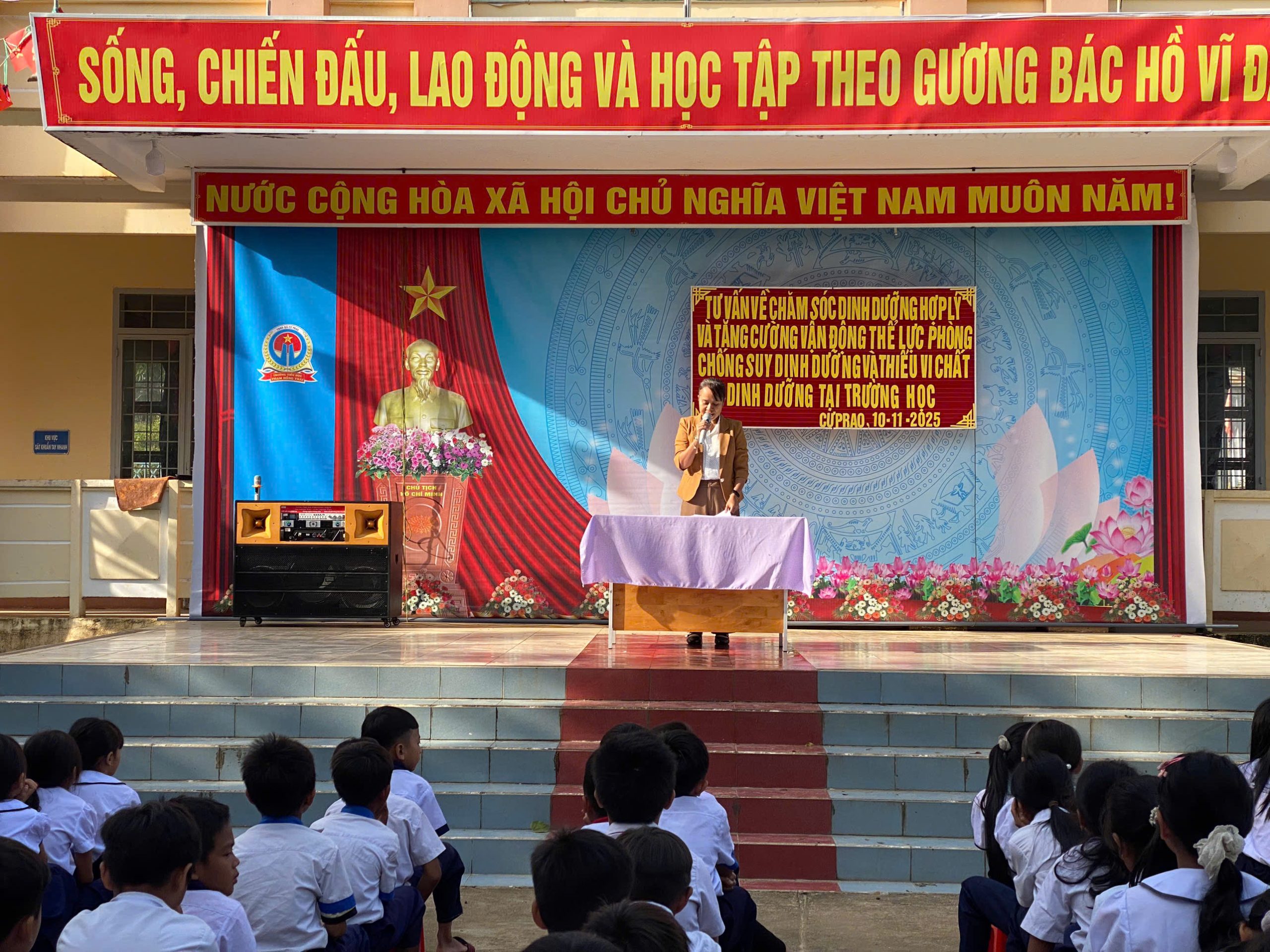 Tại buổi truyền thông, cán bộ y tế của trạm y tế xã Cư Prao đã cung cấp cho học sinh những kiến thức cơ bản và hữu ích về chế độ dinh dưỡng cân đối, an toàn, tầm quan trọng của các vi chất dinh dưỡng như sắt, i-ốt, vitamin A, canxi… trong quá trình phát triển của trẻ em. Học sinh được hướng dẫn lựa chọn thực phẩm lành mạnh, ăn đa dạng các nhóm chất và duy trì thói quen ăn sáng đầy đủ mỗi ngày.